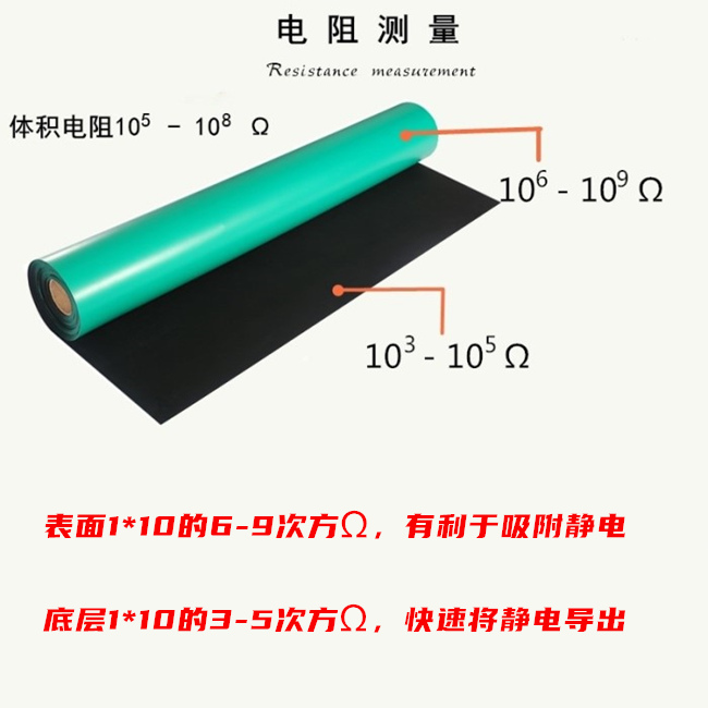 防靜電臺墊主要用抗(導)靜電材料和耗散靜電材料合成橡膠等制做而成。表面層為約 0 5mm 厚的耗散靜電層,底層為約 1 5mm 厚的導電層。